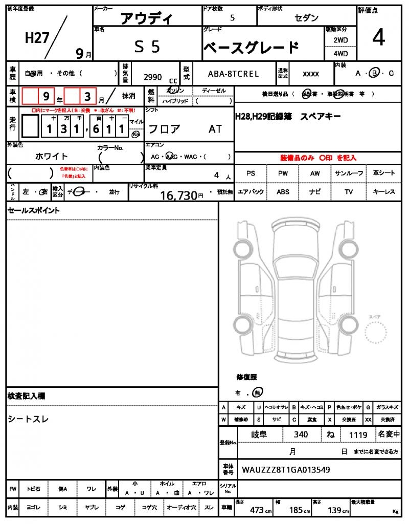 | VIN/Serial No. | WAUZZZ8T1GA013549 |
