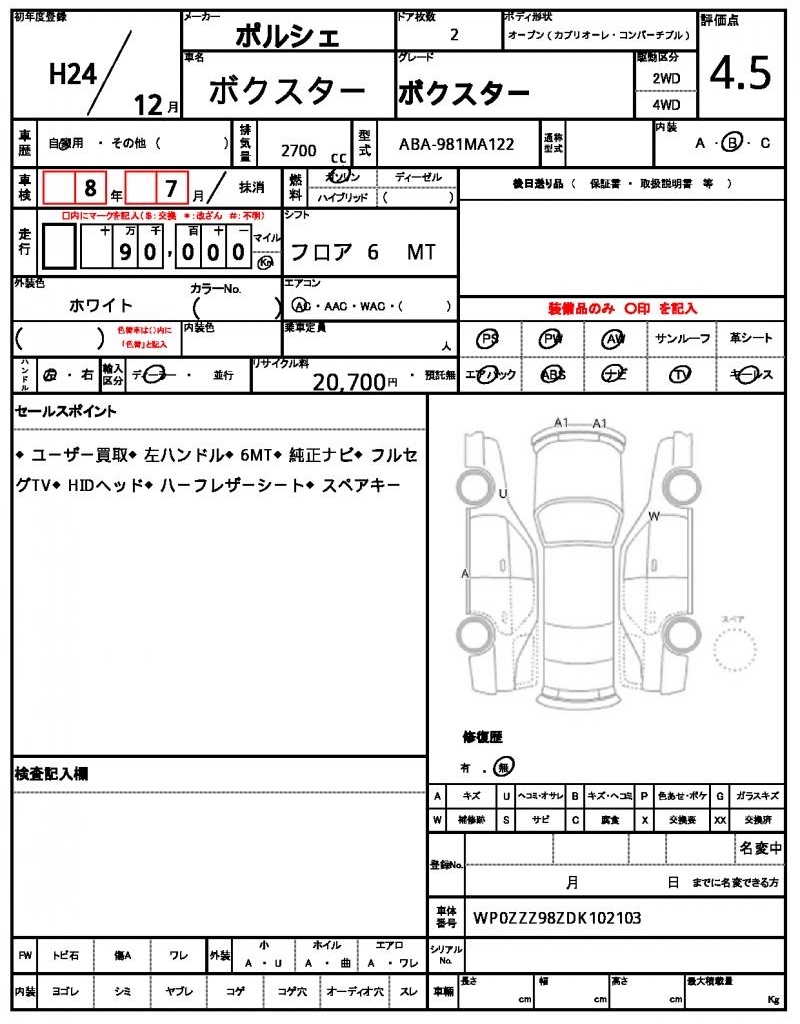| VIN/Serial No. | WP0ZZZ98ZDK102103 |