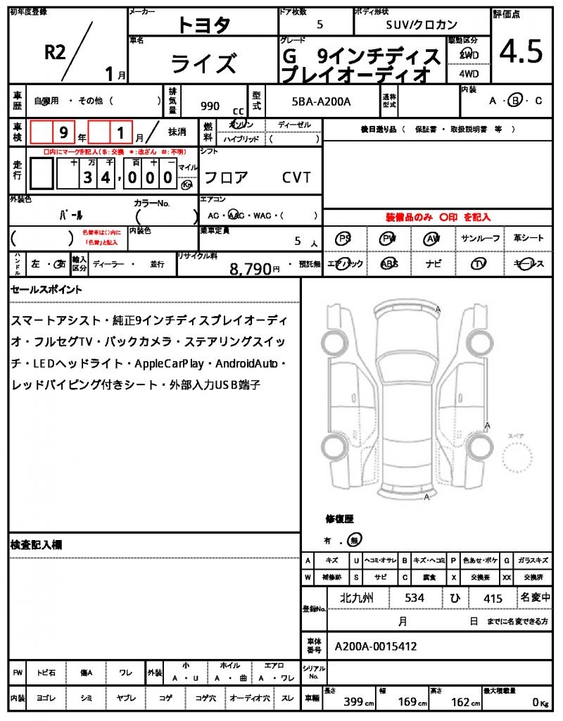 | Model code | 5BA-A200A |