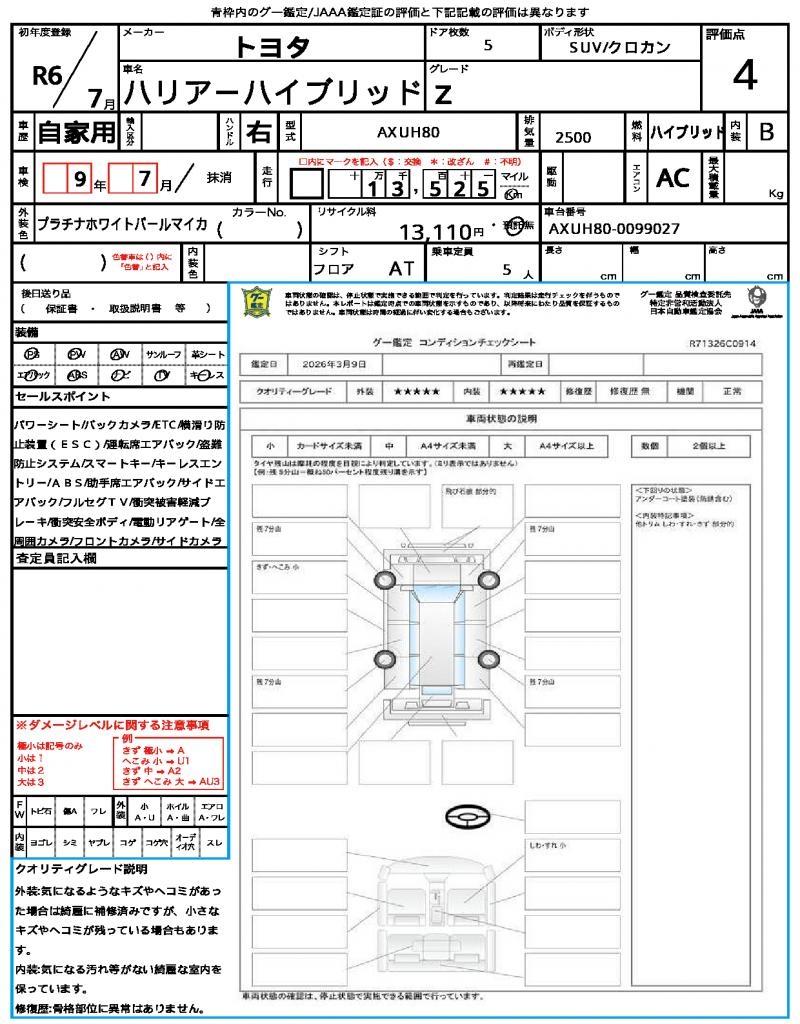 | VIN/Serial No. | AXUH80-0099027 |