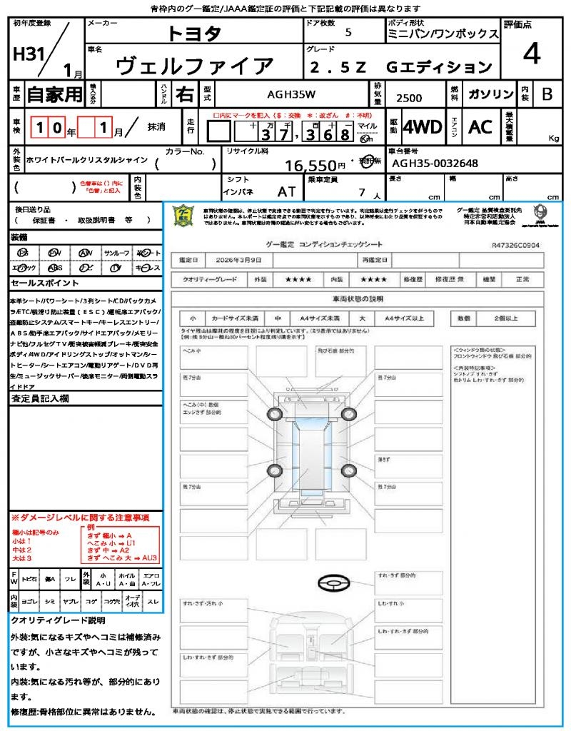 | VIN/Serial No. | AGH35-0032648 |