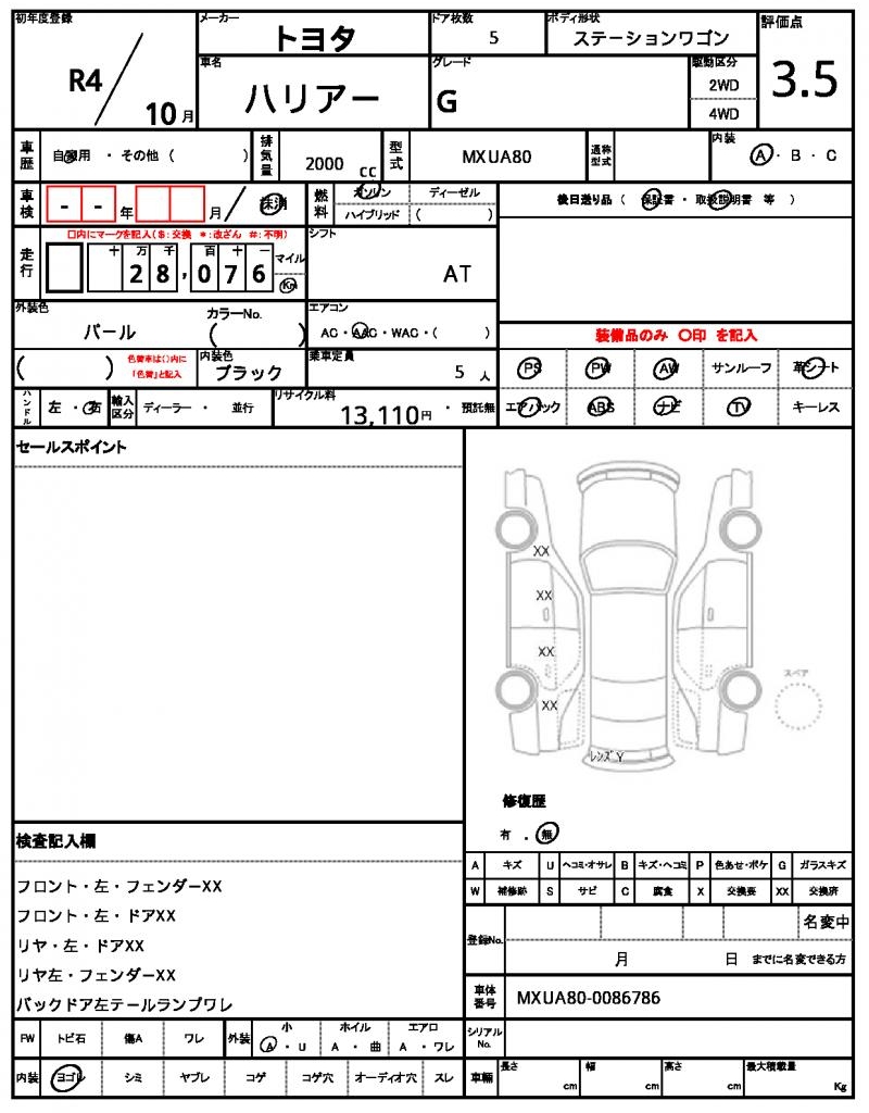 | VIN/Serial No. | MXUA80-0086786 |