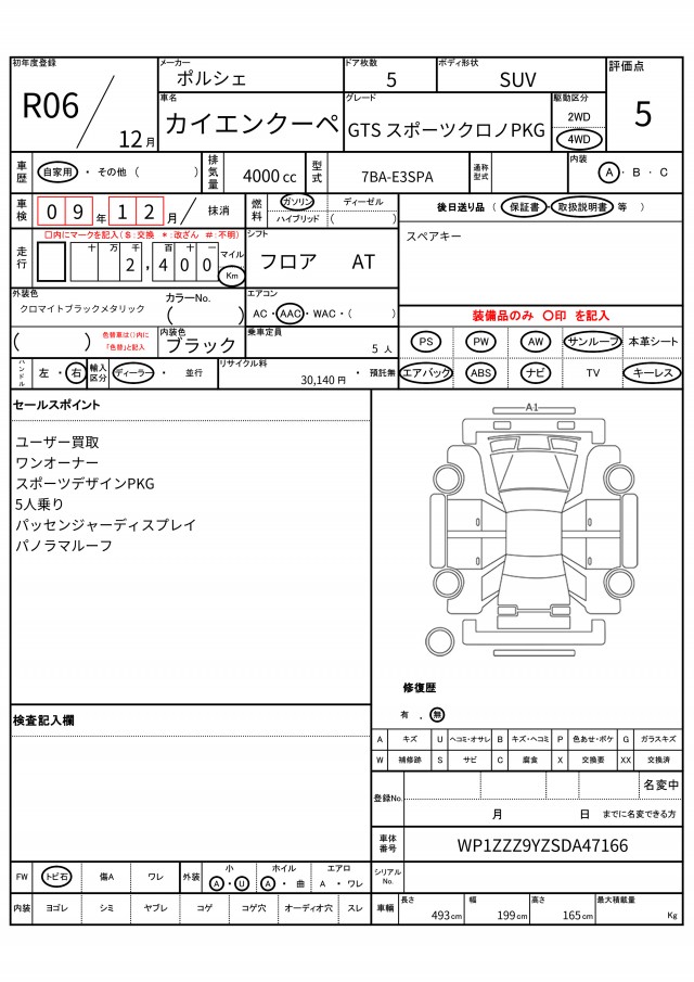 | VIN/Serial No. | WP1ZZZ9YZSDA47166 |