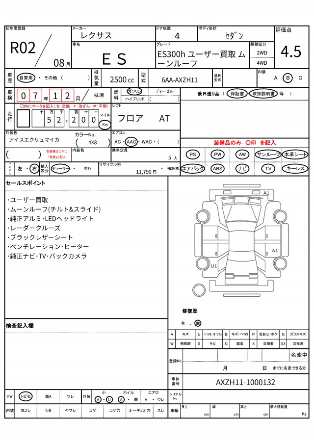 | VIN/Serial No. | AXZH11-1000132 |