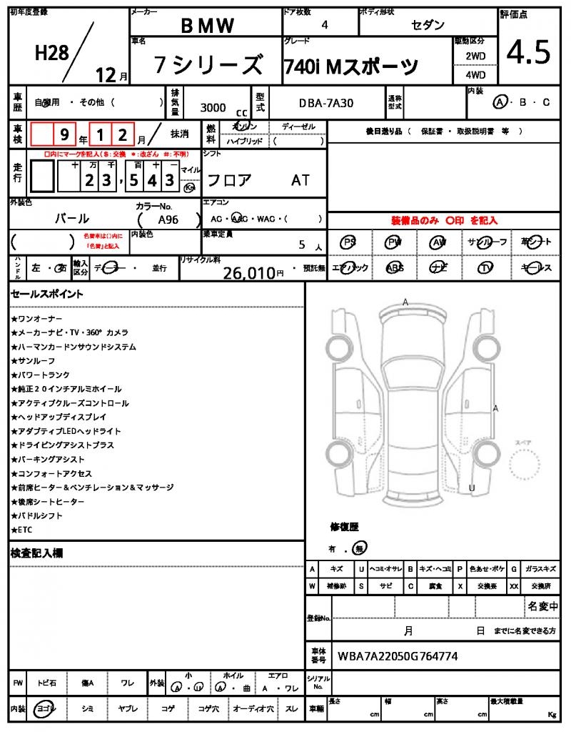 | VIN/Serial No. | WBA7A22050G764774 |