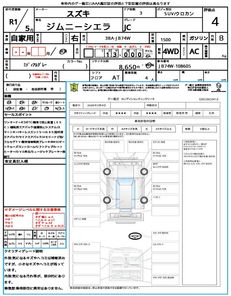 | VIN/Serial No. | JB74W-108605 |