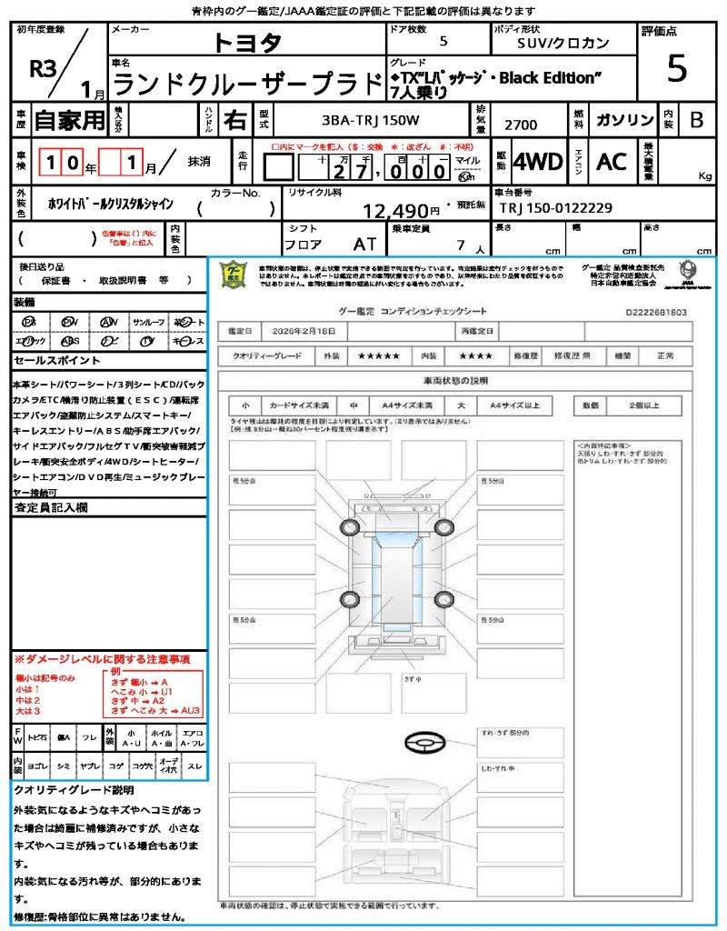 | VIN/Serial No. | TRJ150-0122229 |