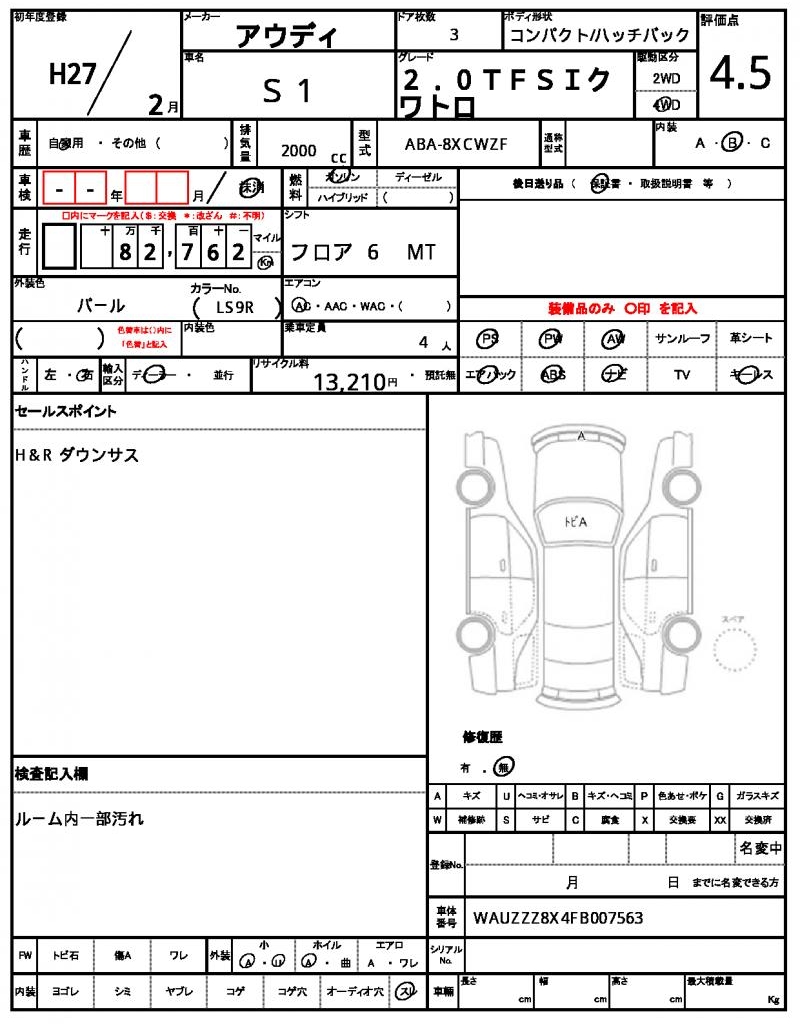 | VIN/Serial No. | WAUZZZ8X4FB007563 |