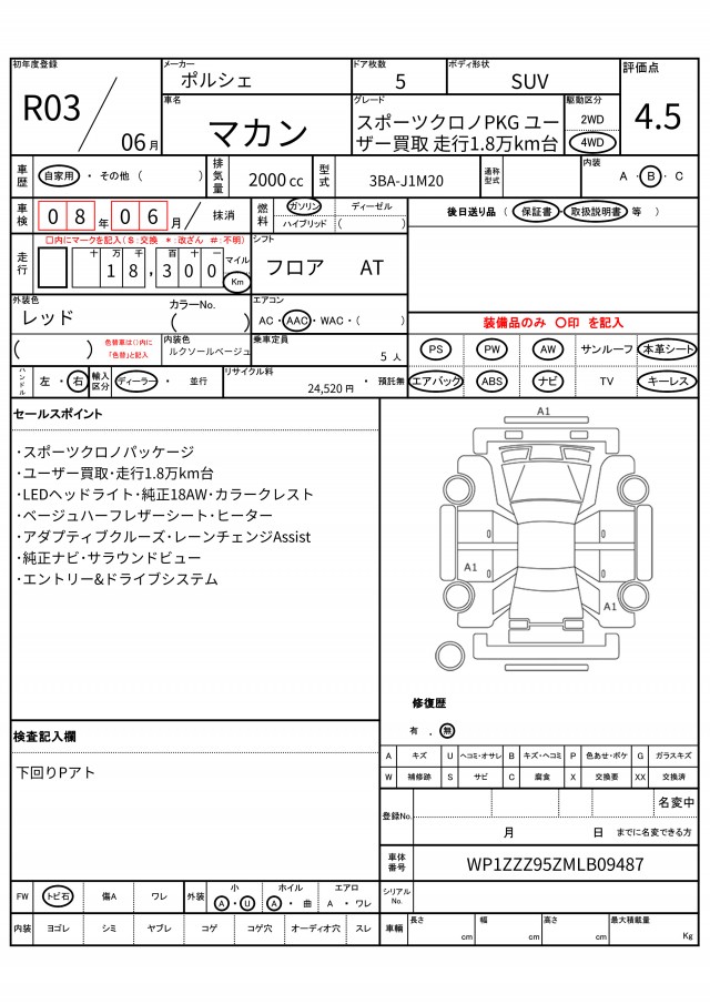 VIN/Serial No. WP1ZZZ95ZMLB09487