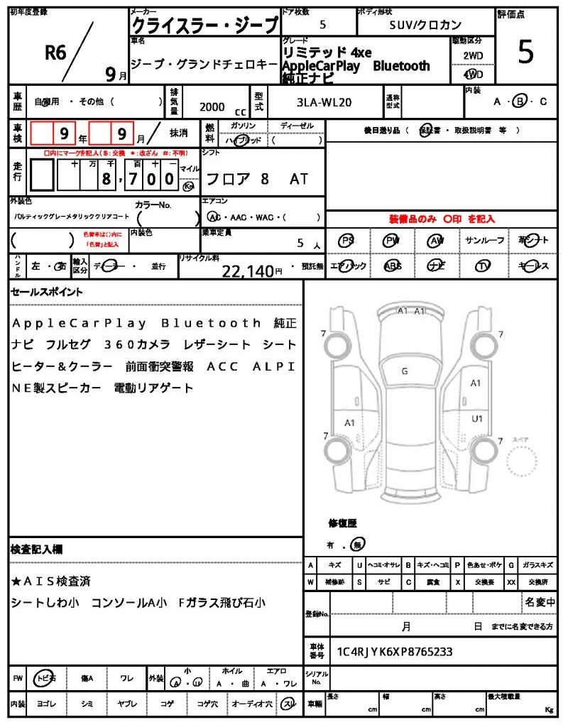 | VIN/Serial No. | 1C4RJYK6XP8765233 |