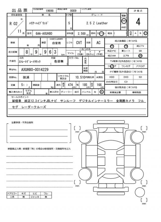 | VIN/Serial No. | AXUH80-0014229 |