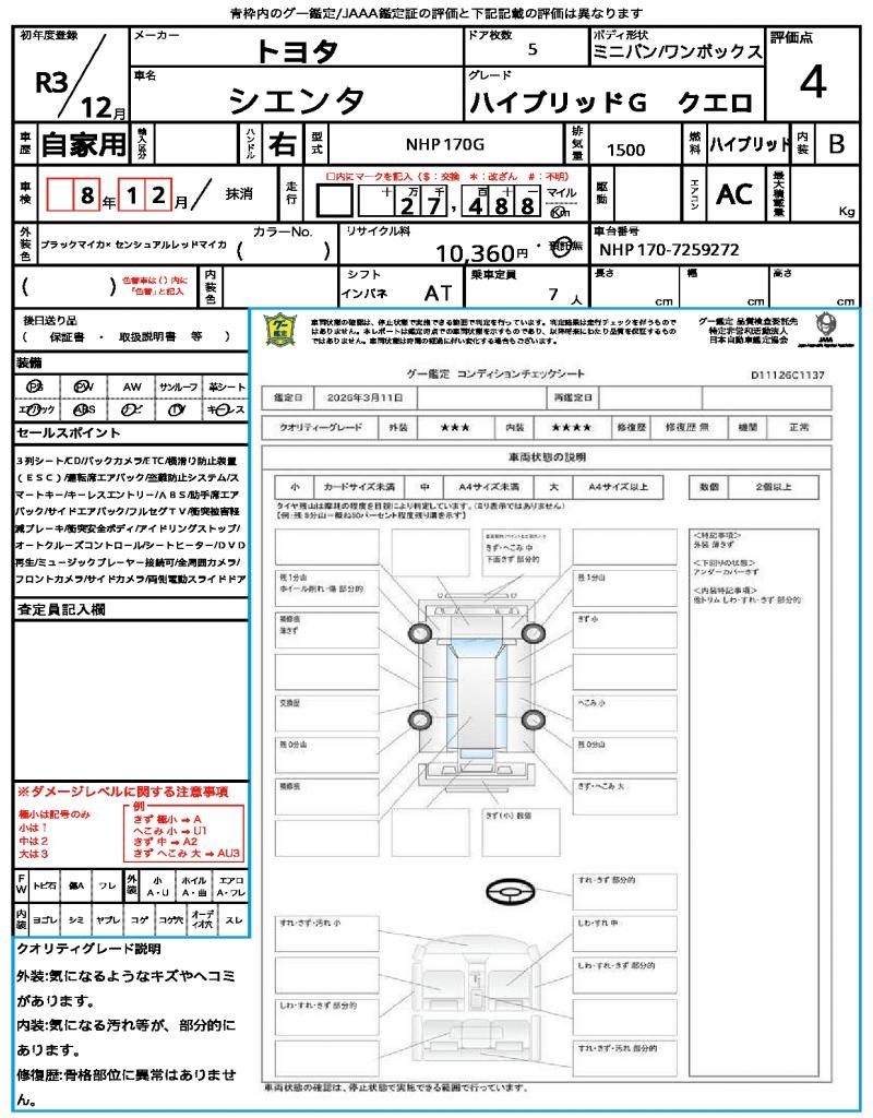 | VIN/Serial No. | NHP170-7259272 |