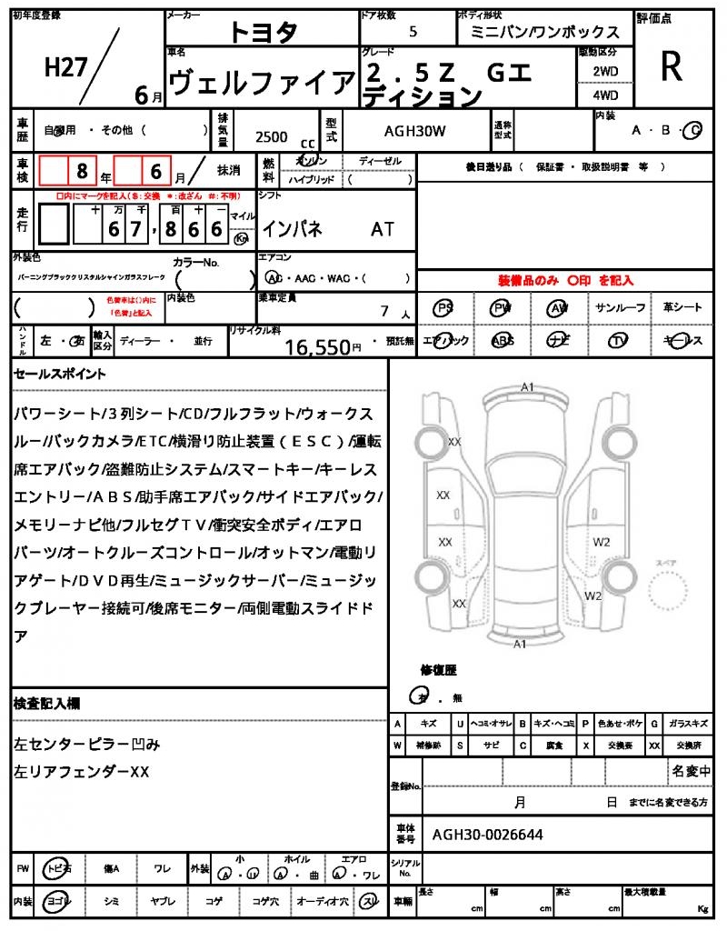 | VIN/Serial No. | AGH30-0026644 |