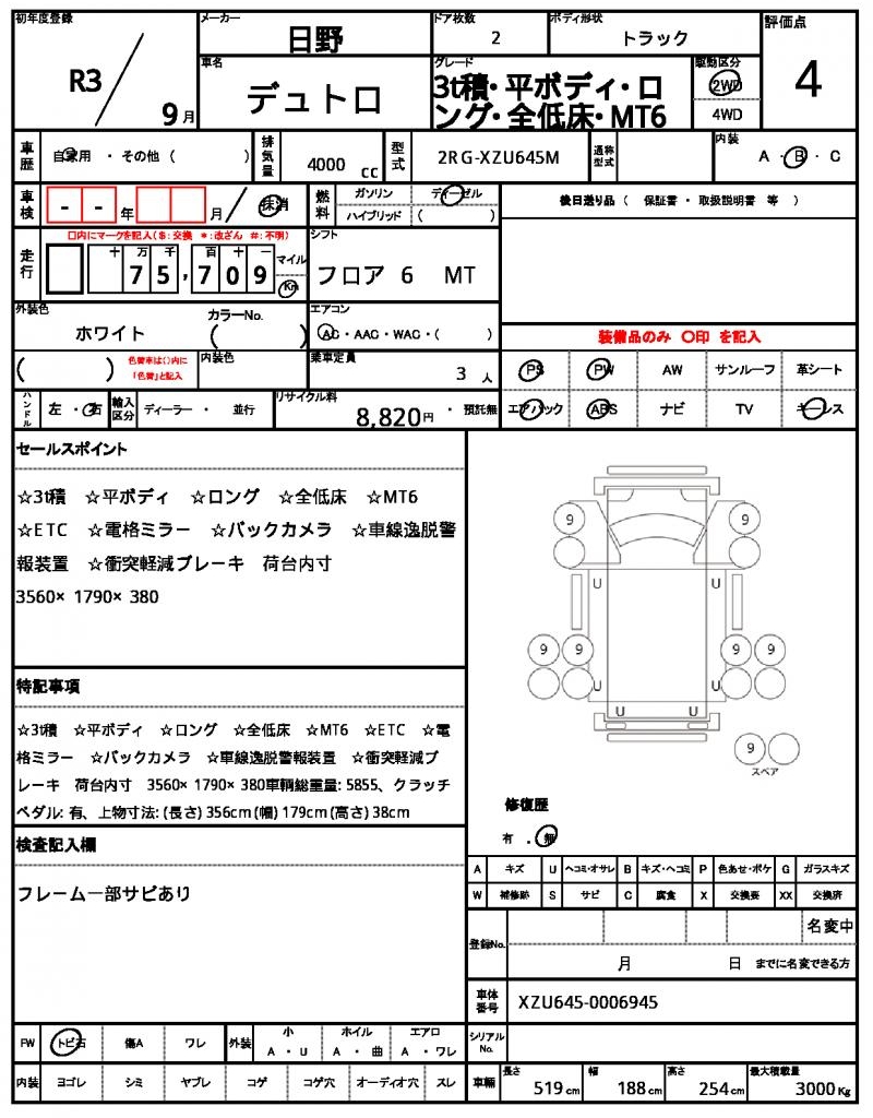 | VIN/Serial No. | XZU645-0006945 |