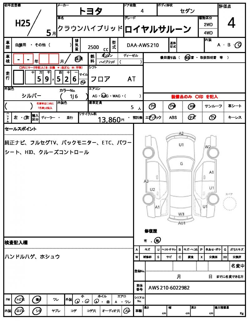 | VIN/Serial No. | AWS210-6022982 |