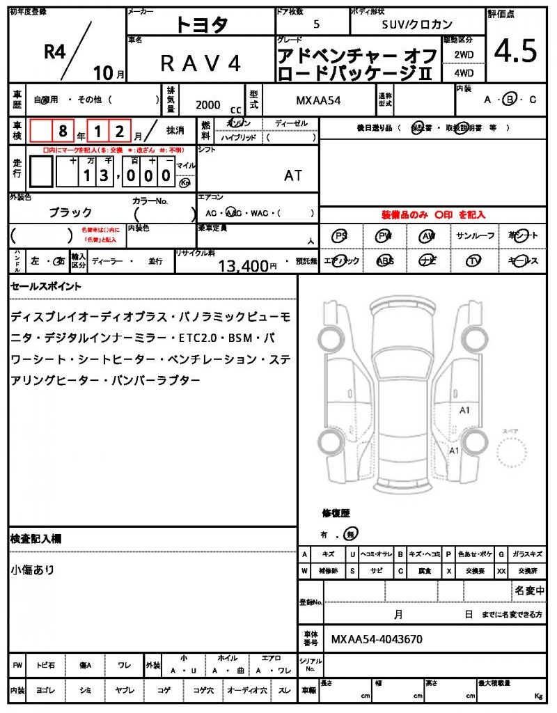 | VIN/Serial No. | MXAA54-4043670 |