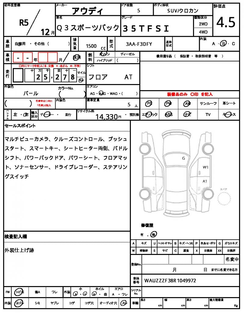 VIN/Serial No. WAUZZZF38R1049972