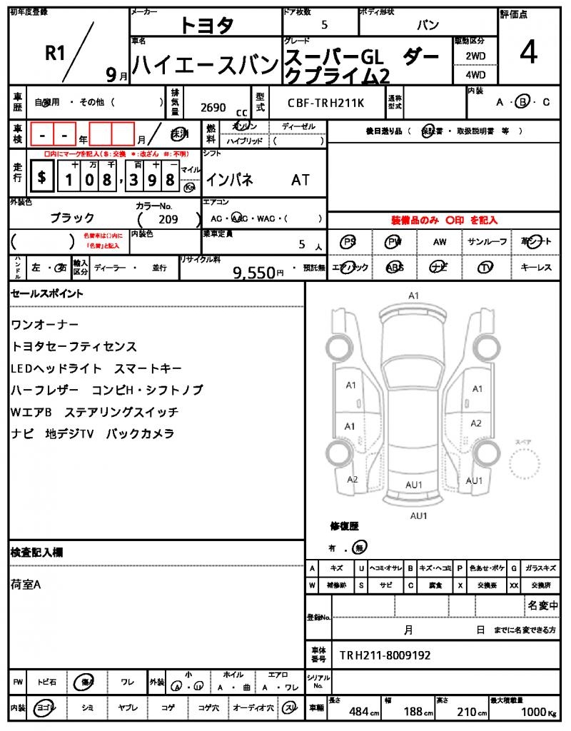 | VIN/Serial No. | TRH211-8009192 |
