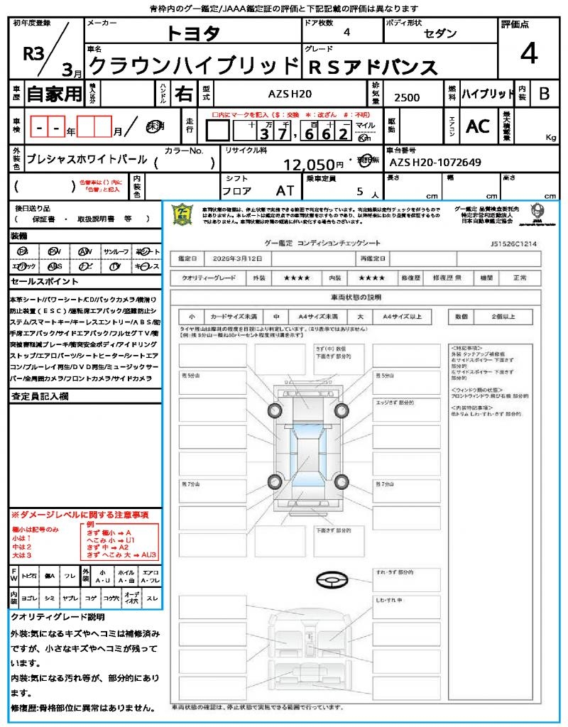 | VIN/Serial No. | AZSH20-1072649 |