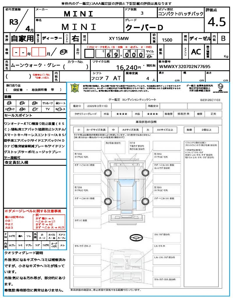 | VIN/Serial No. | WMWXY320702N77695 |