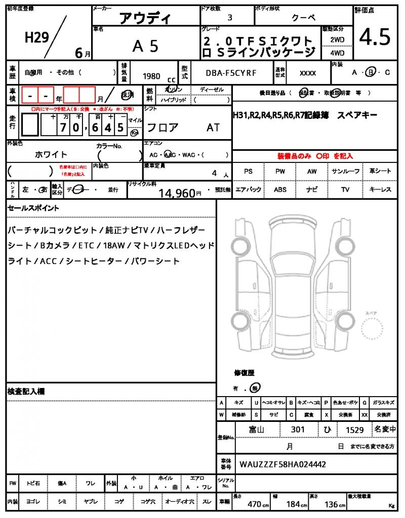 | VIN/Serial No. | WAUZZZF58HA024442 |