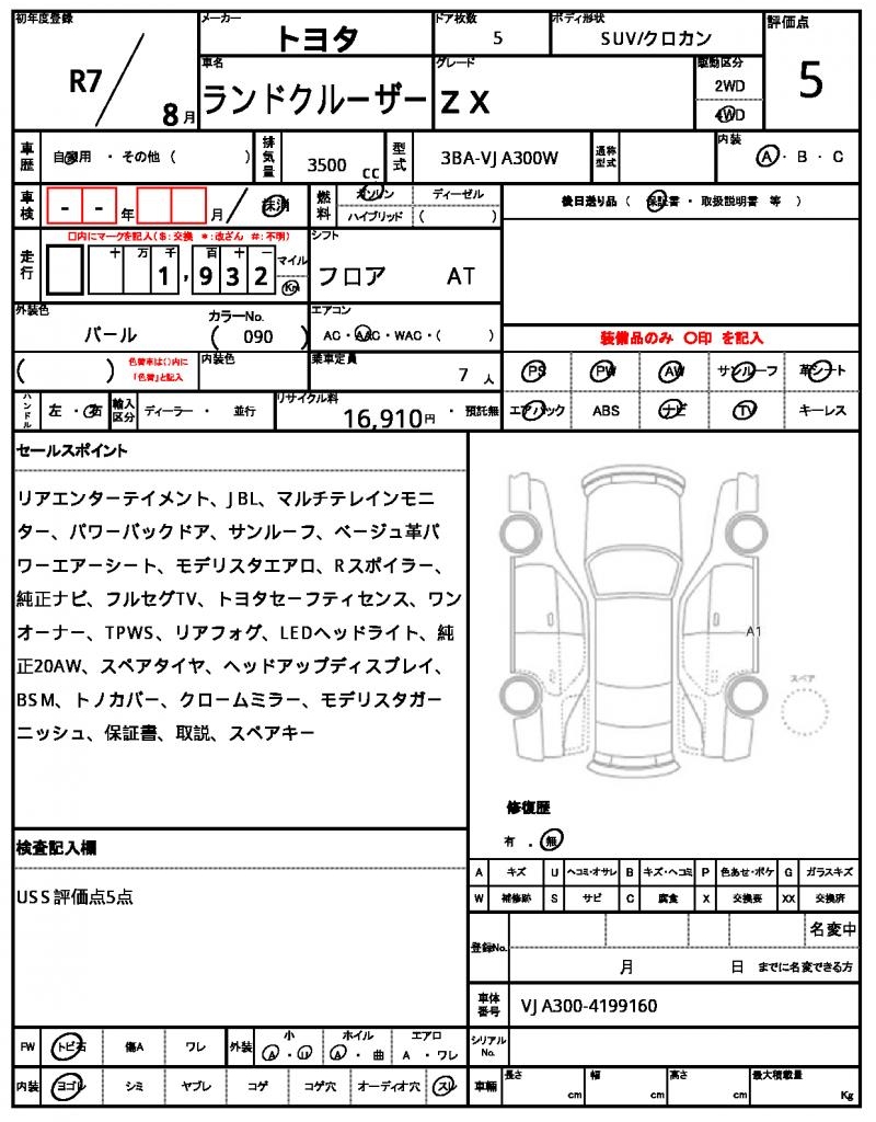 | Model code | 3BA-VJA300W |