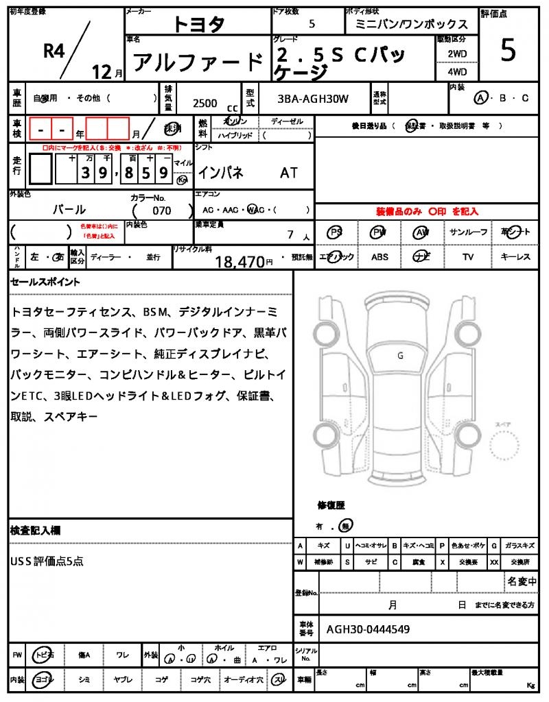 | VIN/Serial No. | AGH30-0444549 |