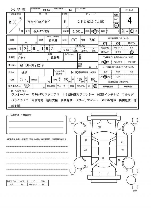 | VIN/Serial No. | AYH30-0121219 |