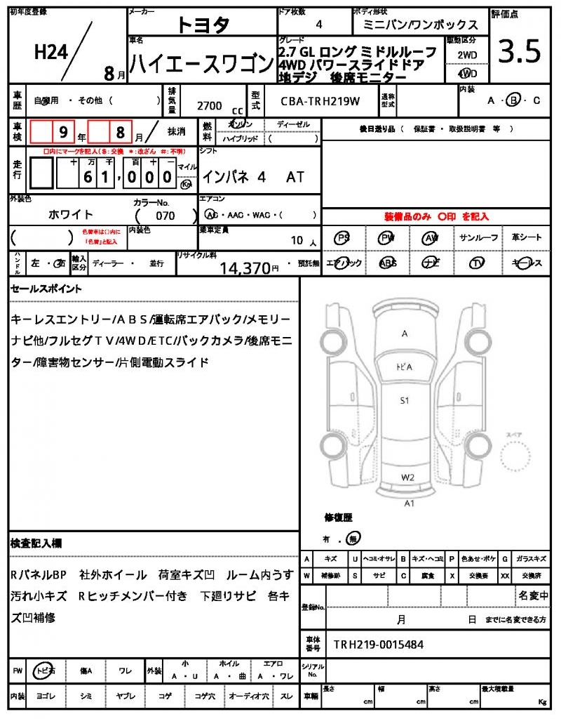 | VIN/Serial No. | TRH219-0015484 |