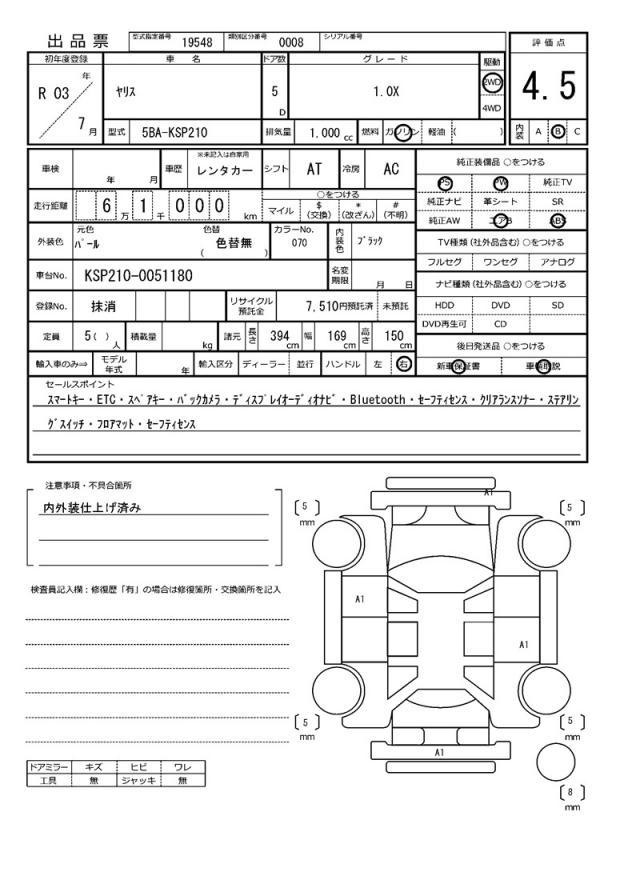 | VIN/Serial No. | KSP210-0051180 |