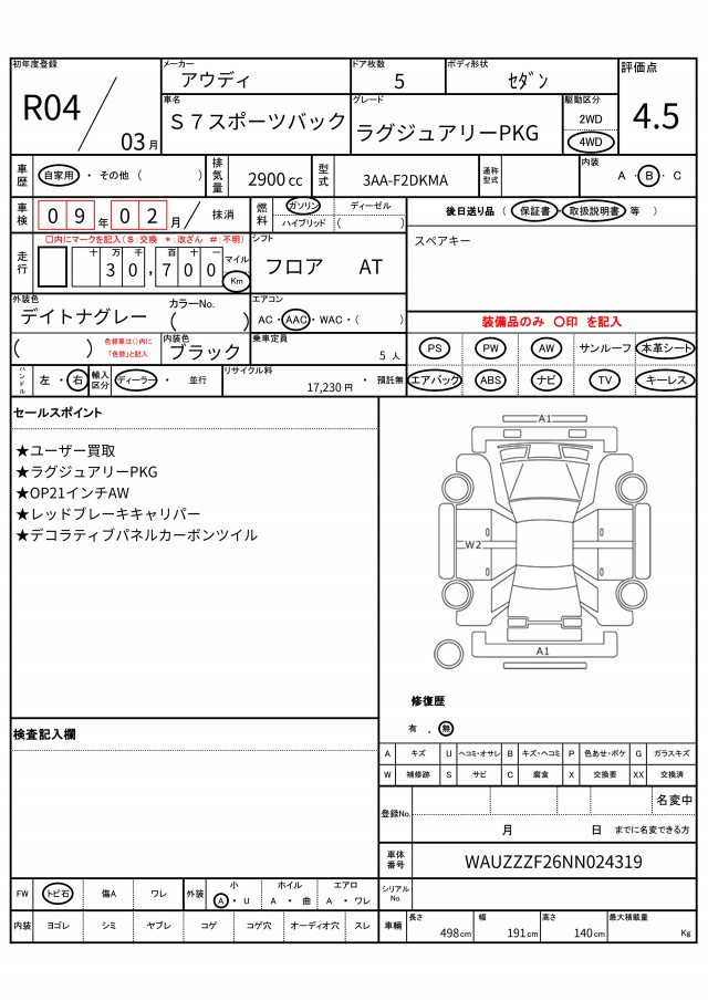 | VIN/Serial No. | WAUZZZF26NN024319 |