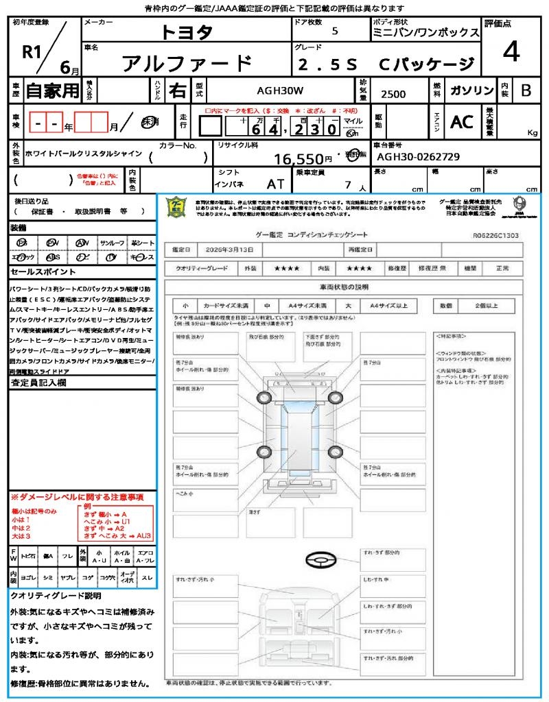 | VIN/Serial No. | AGH30-0262729 |