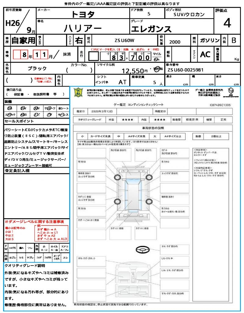 | Odometer | 83700km |