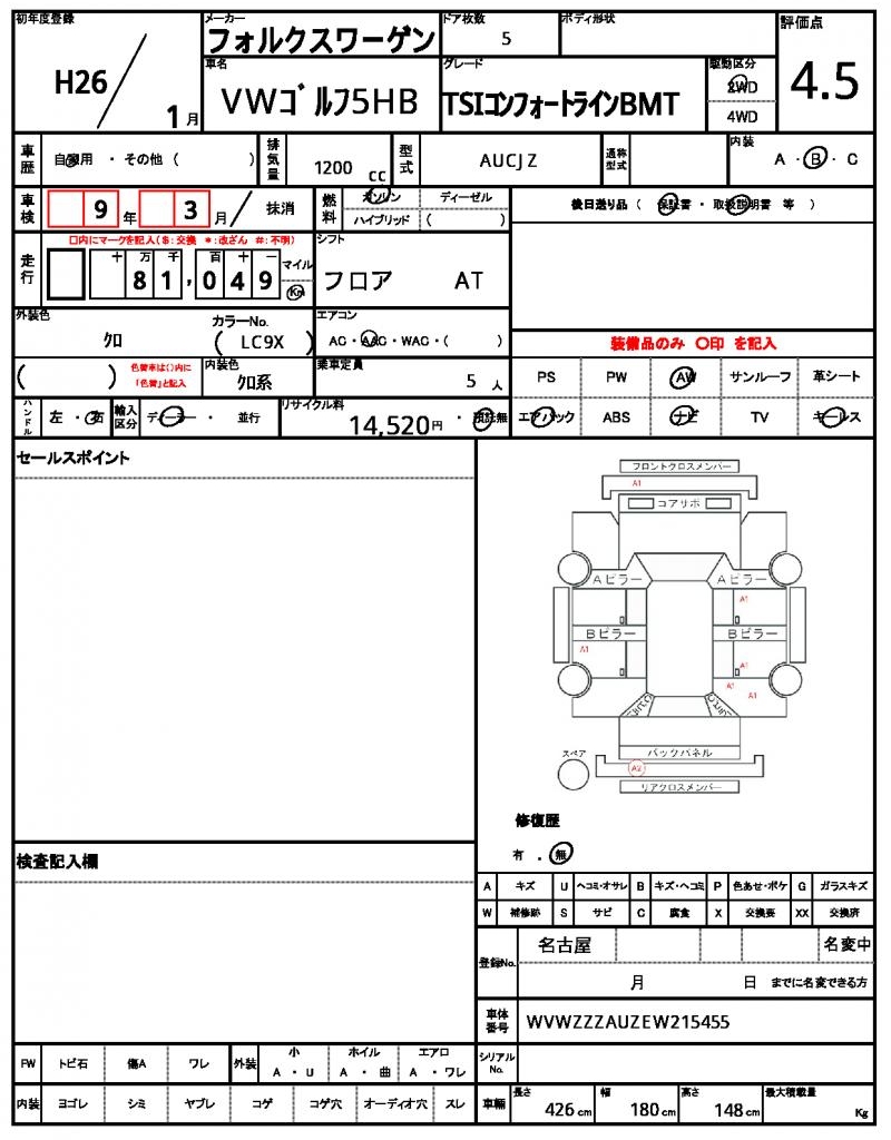 | VIN/Serial No. | WVWZZZAUZEW215455 |