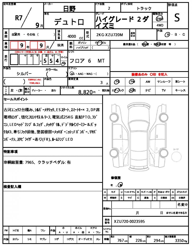 | VIN/Serial No. | XZU720-0023595 |