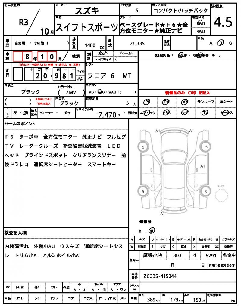 | VIN/Serial No. | ZC33S-415044 |