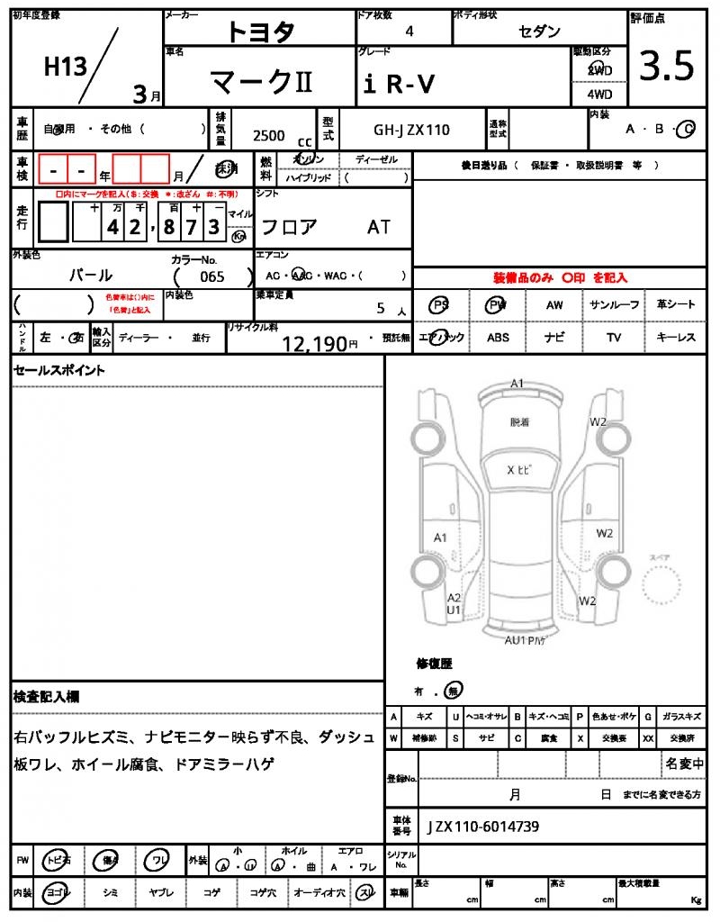 | VIN/Serial No. | JZX110-6014739 |