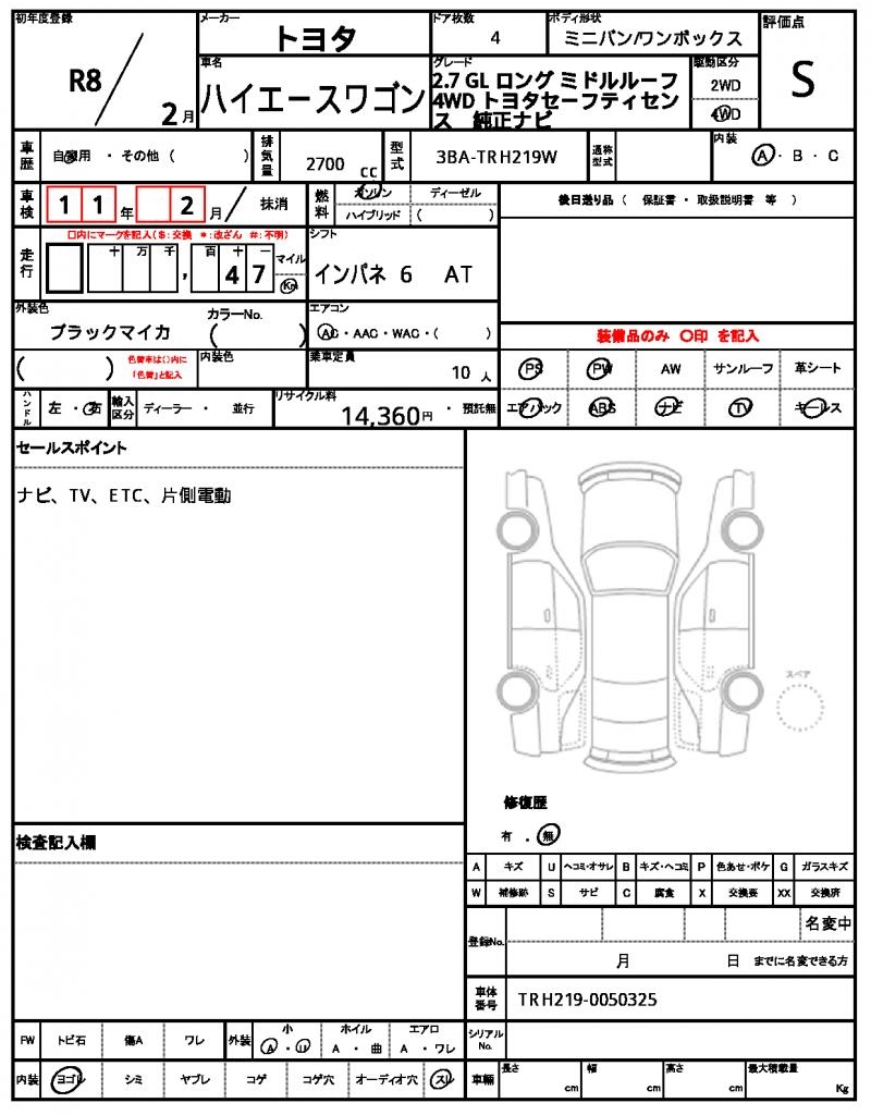 | VIN/Serial No. | TRH219-0050325 |