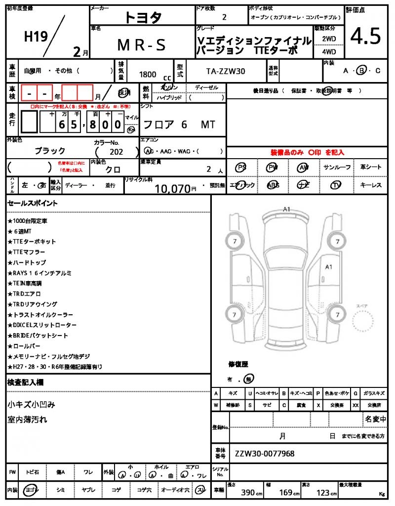 | VIN/Serial No. | ZZW30-0077968 |