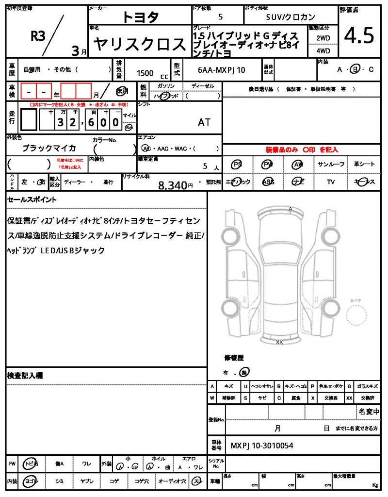 | VIN/Serial No. | MXPJ10-3010054 |