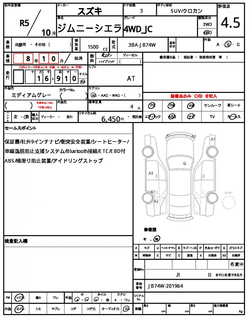| VIN/Serial No. | JB74W-201964 |
