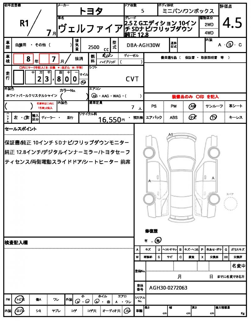 | VIN/Serial No. | AGH30-0272063 |
