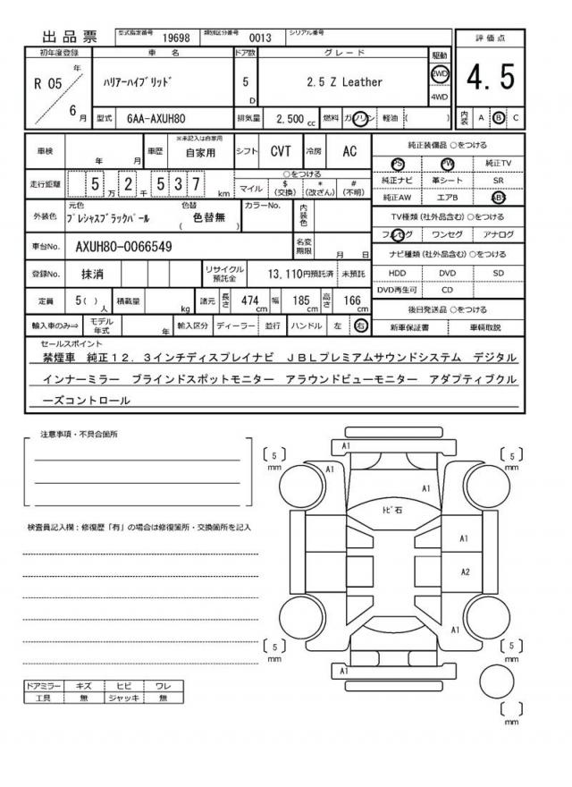 | VIN/Serial No. | AXUH80-0066549 |