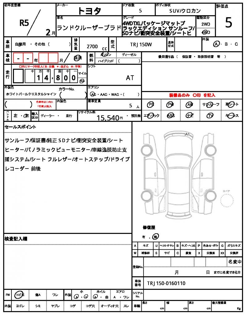 | VIN/Serial No. | TRJ150-0160110 |