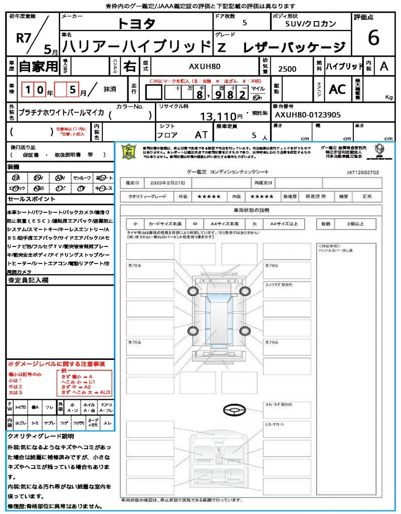 | VIN/Serial No. | AXUH80-0123905 |