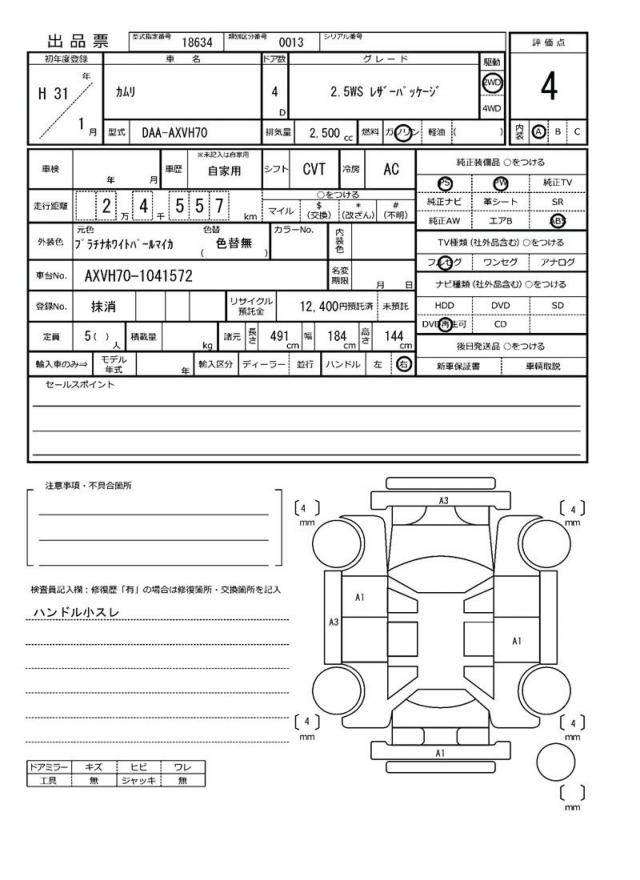 VIN/Serial No. AXVH70-1041572