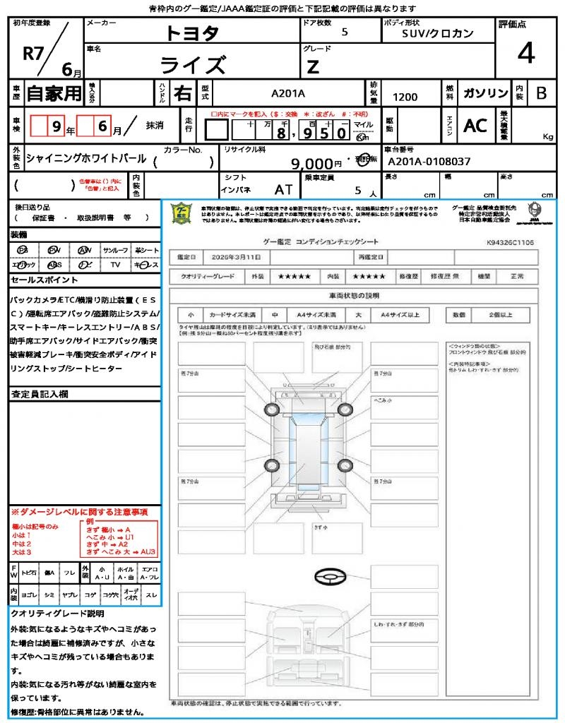 | Odometer | 8950km |
