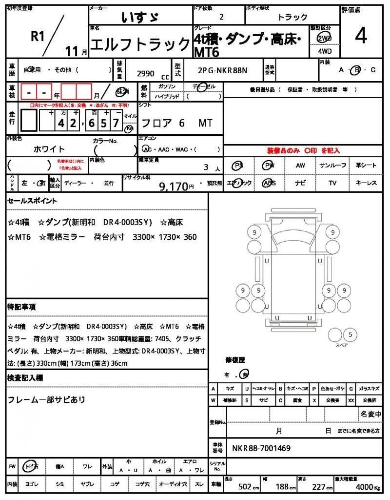 | VIN/Serial No. | NKR88-7001469 |