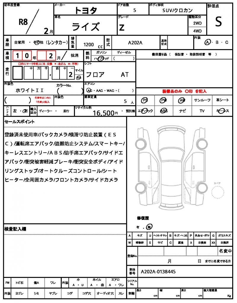 VIN/Serial No. A202A-0138445