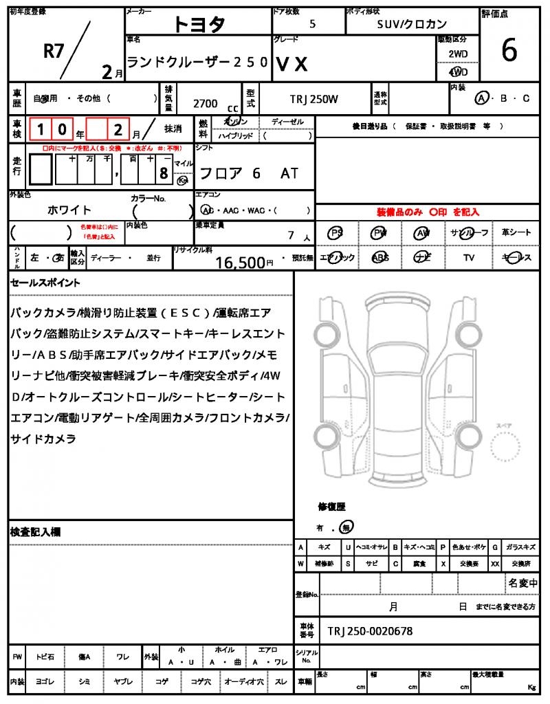 VIN/Serial No. TRJ250-0020678